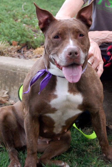 |  Darbee - Adopted!! Darbee is a three year old Pittie Mix. She is very quiet and sweet. Darbee is approved for homes of all ages! She is good with other dogs and would love to meet them! Darbee was transferred from the city shelter to the PSPCA in the hopes that she would be adopted quickly. Is she the girl for you? |